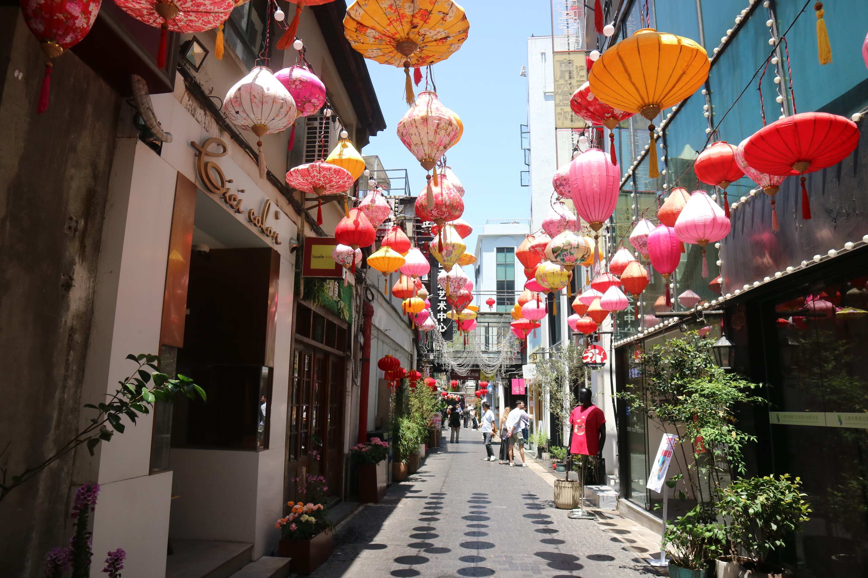 티엔즈팡 입구는 좁은 골목길 사이 꽃으로 뒤덮혀 있고