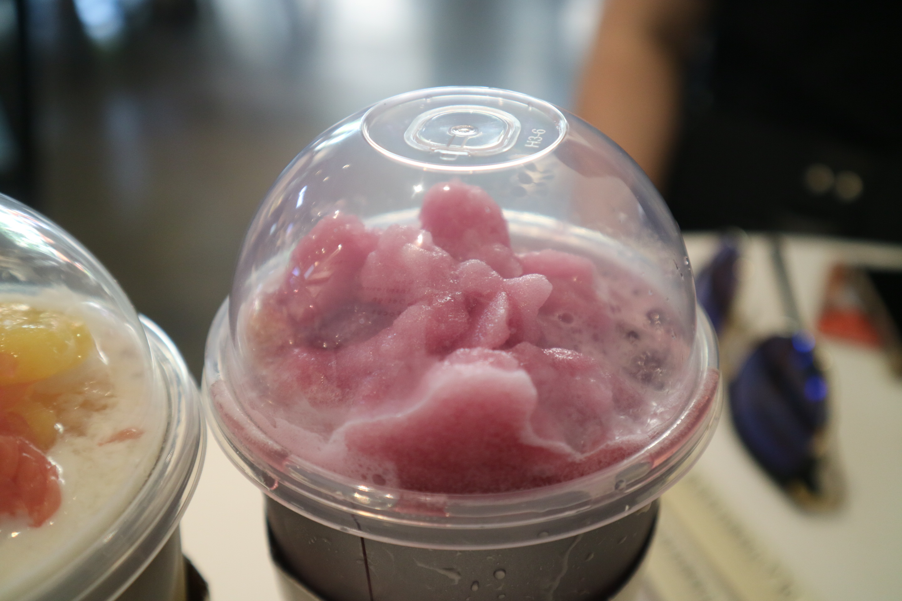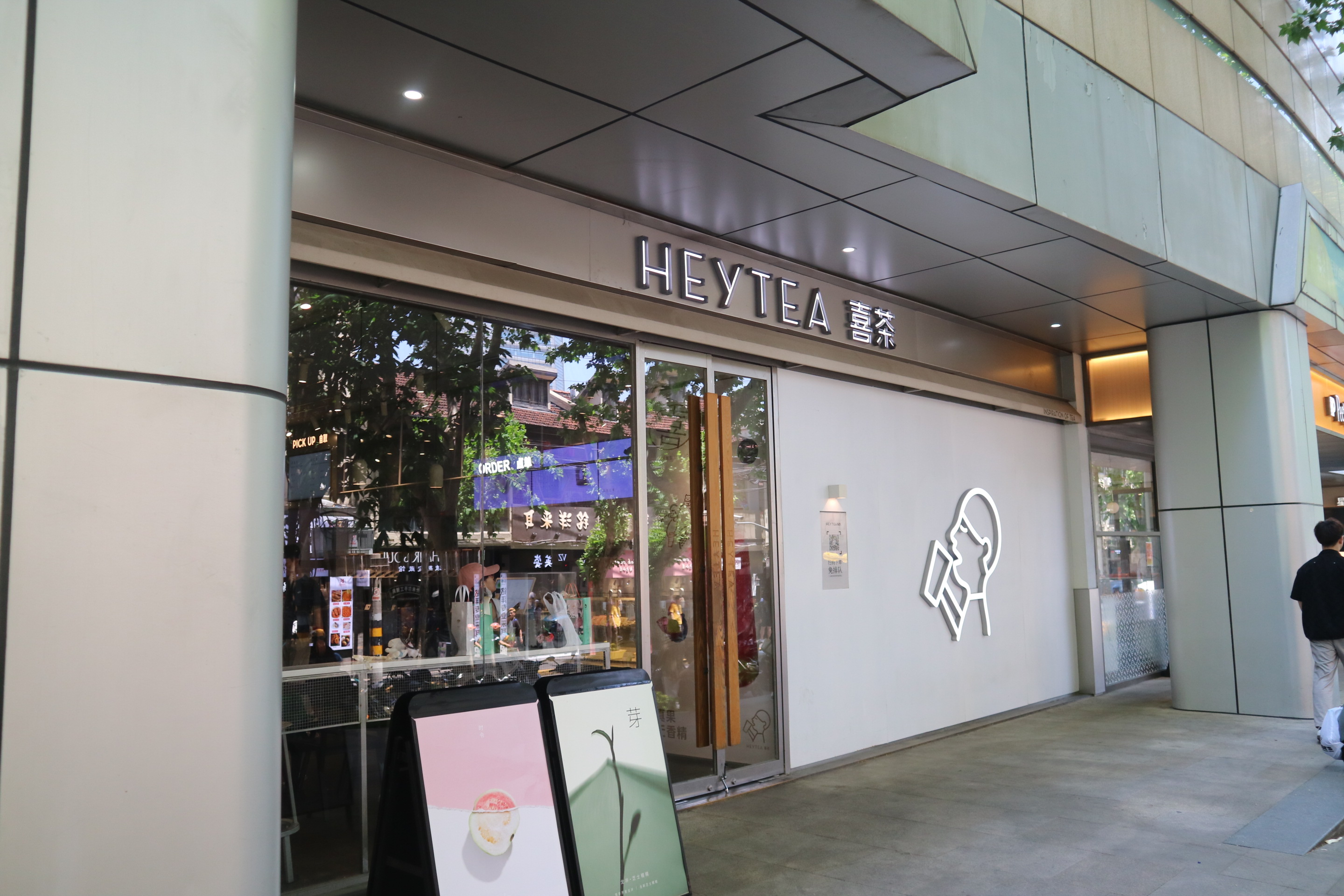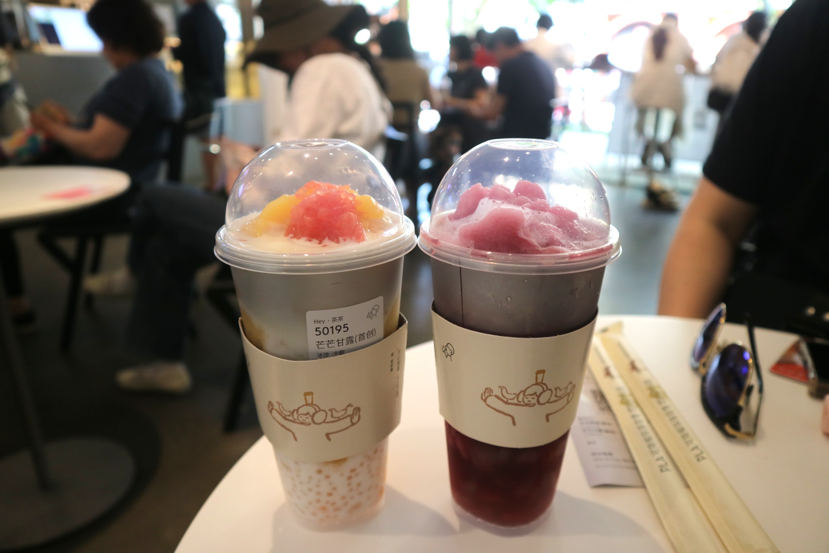 상하이에서 유명한 헤이티(喜茶, Heytea)에 들러 포도주스와 망고주스를 주문했습니다.