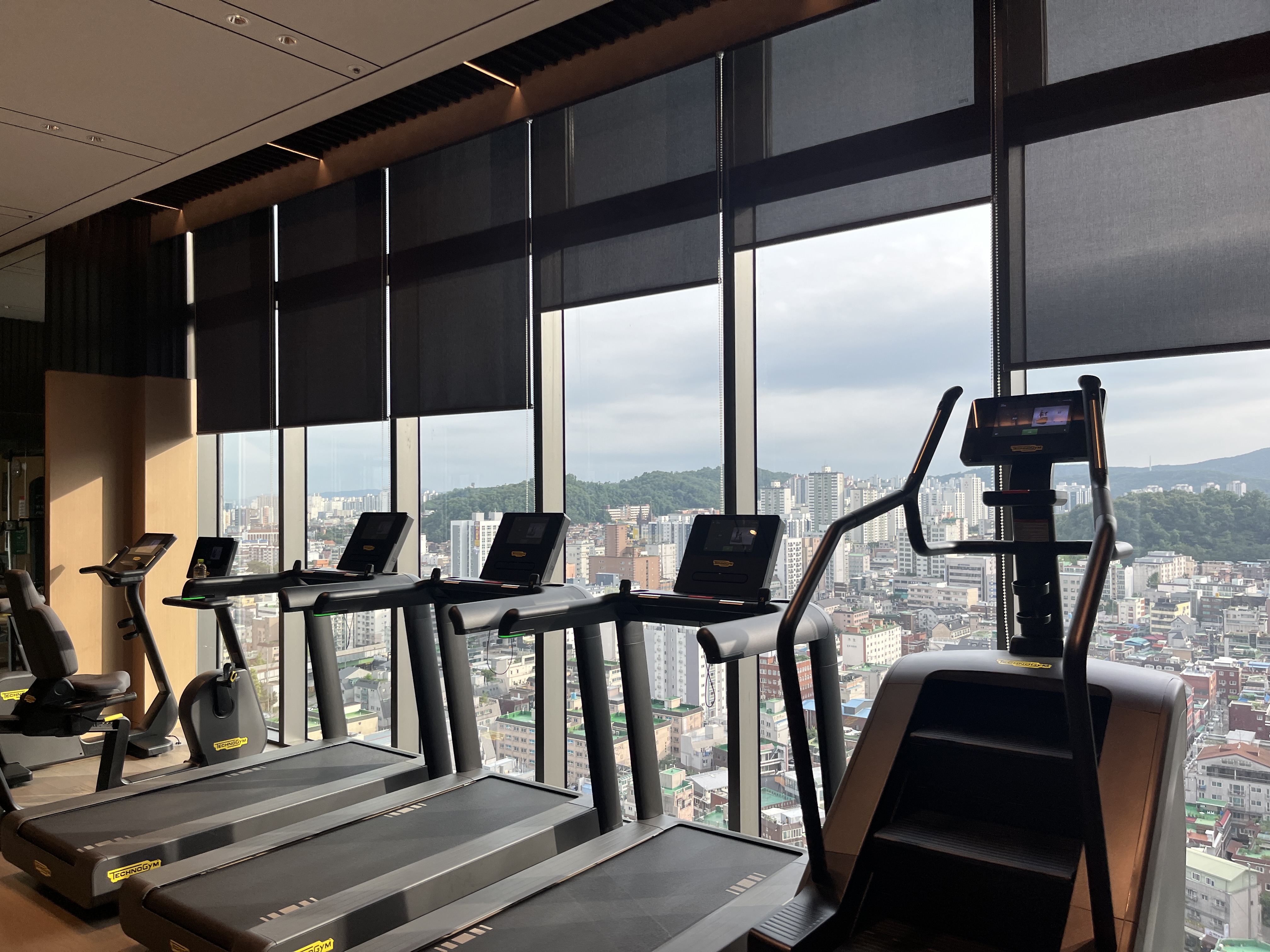 헬스장은 22층 로비 옆에 위치해 있고, 24시간 운영이라 시간 제약이 없었습니다.