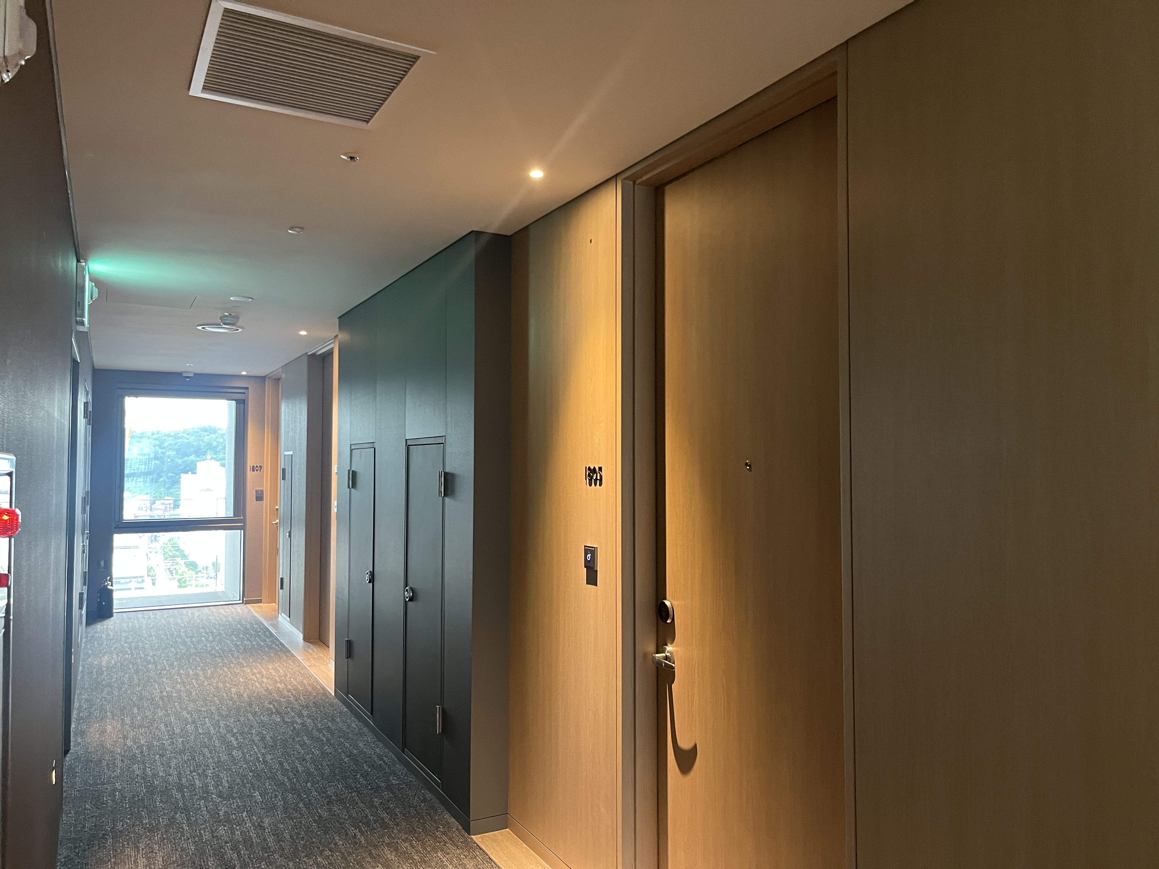 저희는 18층 프리미어룸에 배정받아 올라왔습니다. 복도에 들어서자마자 느낀 건 향기였습는데요, 호텔 전체적으로 강한 꽃향기가 났는데, 호텔의 고급스러운 분위기와 잘 어울렸습니다.