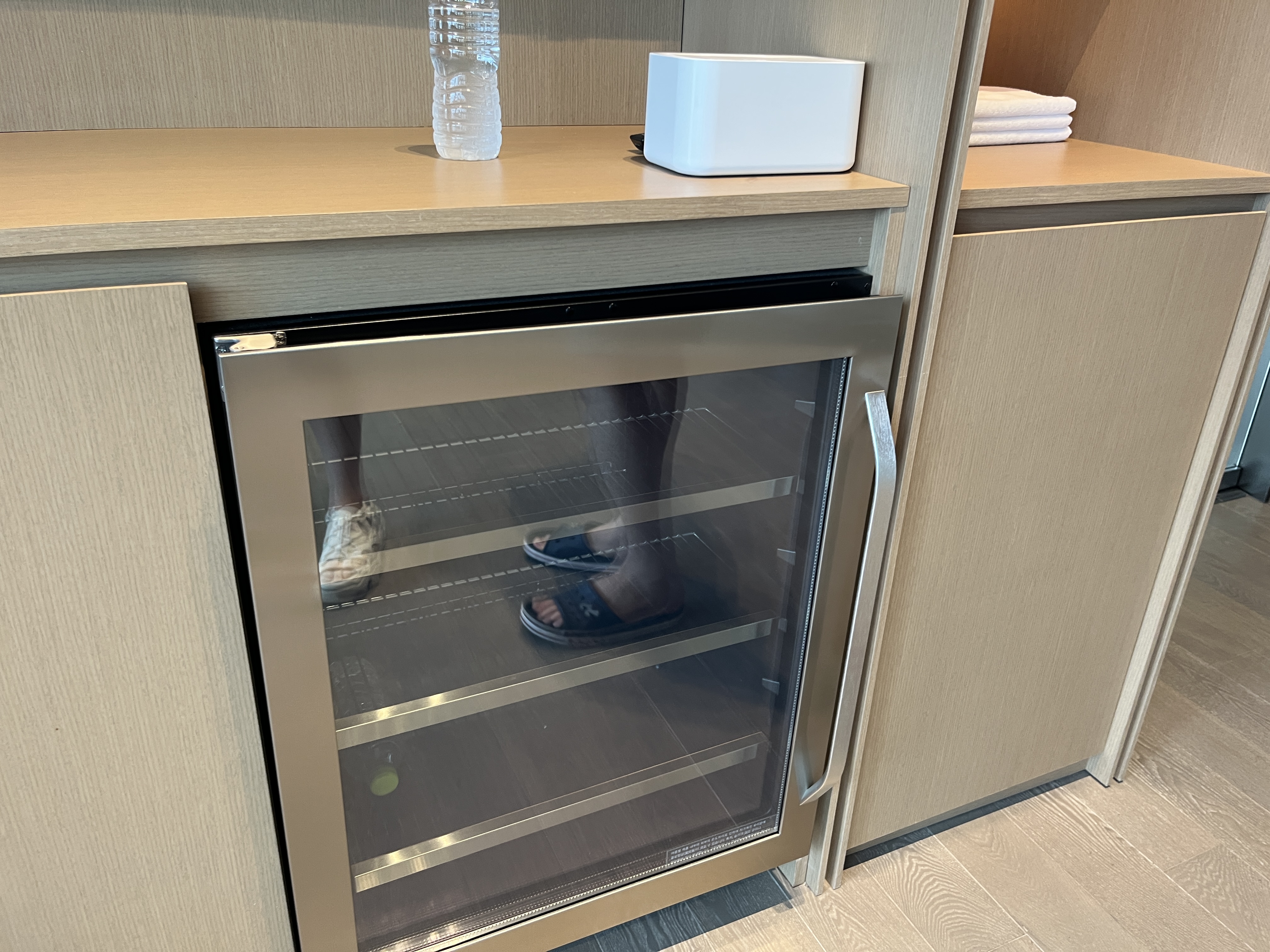 슬리퍼, 샤워가운, 냉장고, 정수기, 와인잔, 머그잔, 커피, 티 등 기본적인건 구비되어 있는데,